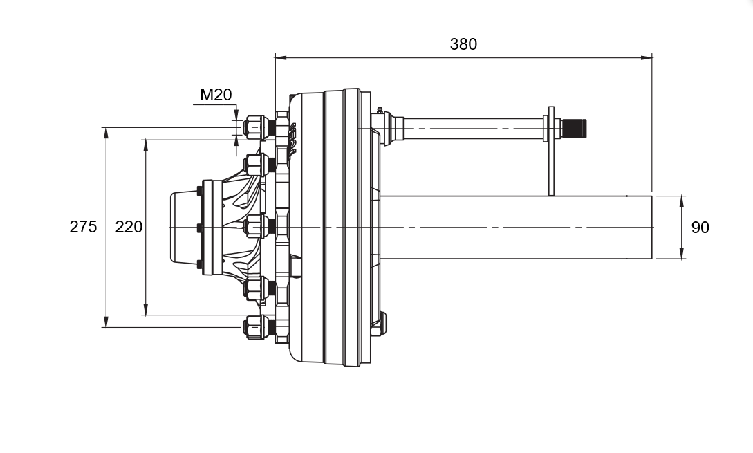 ΗΜΙΑΞΟΝΑΣ ΜΕ ΦΡΕΝΑ - 5000 kg (8 ΒΙΔΕΣ) - 380 mm