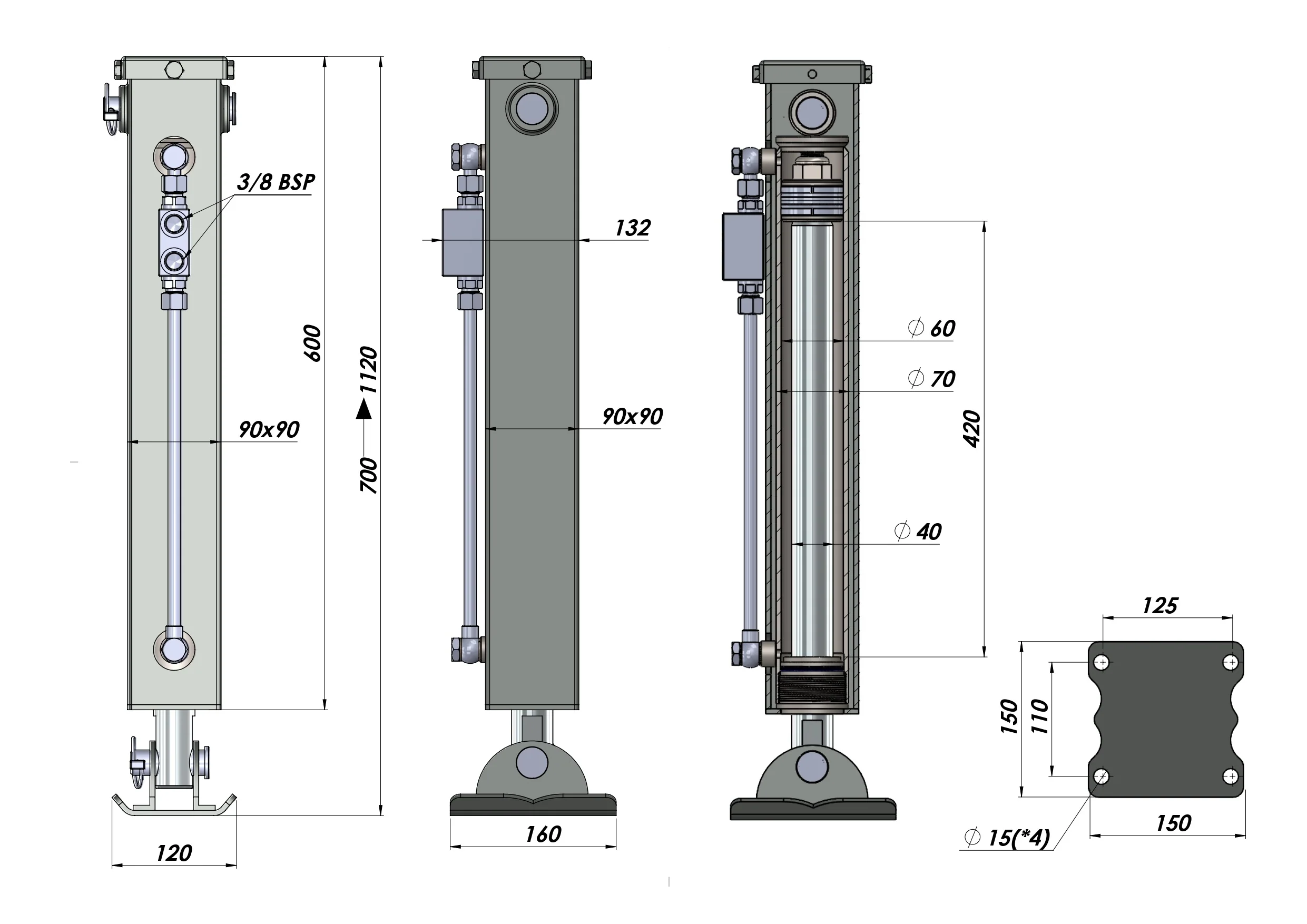 ΥΔΡΑΥΛΙΚΟ ΠΟΔΙ ΣΤΗΡΙΞΗΣ ΔΙΠΛΗΣ ΕΝΕΡΓΕΙΑΣ (90x90x700 mm) - ΔΙΑΔΡΟΜΗ 420 mm - 2.500 kg