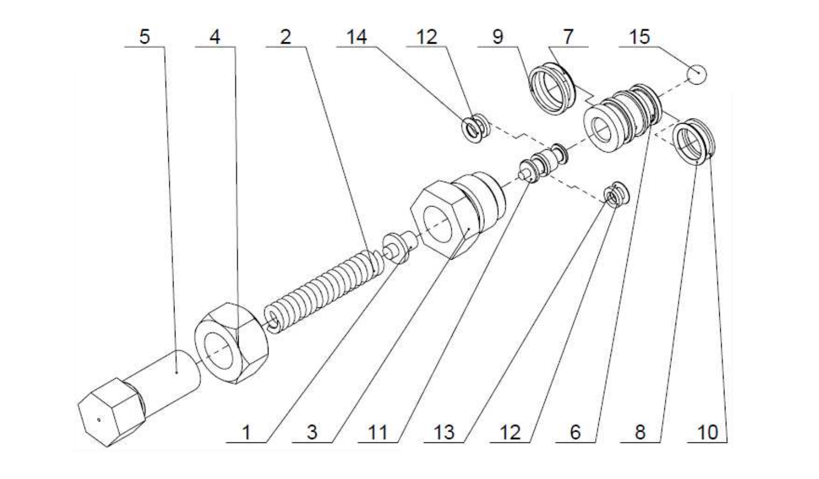 Η εργοστασιακή ρύθμιση είναι 70 bar. Η ακίδα απελευθέρωσης πίεσης ρυθμίζεται χαλαρώνοντας το παξιμάδι (4) και γυρίζοντας την βίδα ρύθμισης (5). Το γύρισμα της βίδας δεξιόστροφα αυξάνει την πίεση ρύθμισης της ακίδας απελευθέρωσης, ενώ το γύρισμα αριστερόστροφα μειώνει την πίεση.