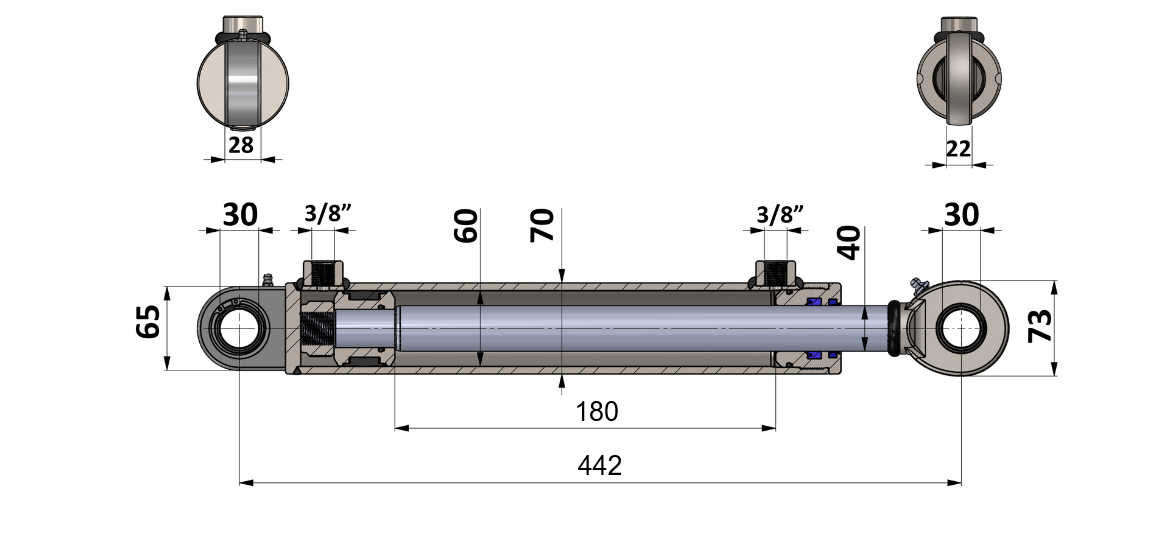 | Síla při zatažení válce (při 250 bar): | 3,93 tuny |