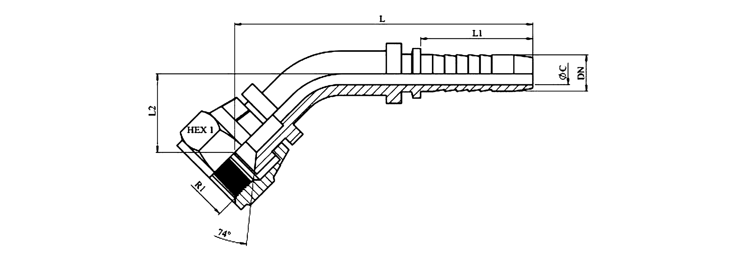 HYDRAULISCHER ANSCHLUSS BSP WEIBLICH KNIE 45° DN10-1/4