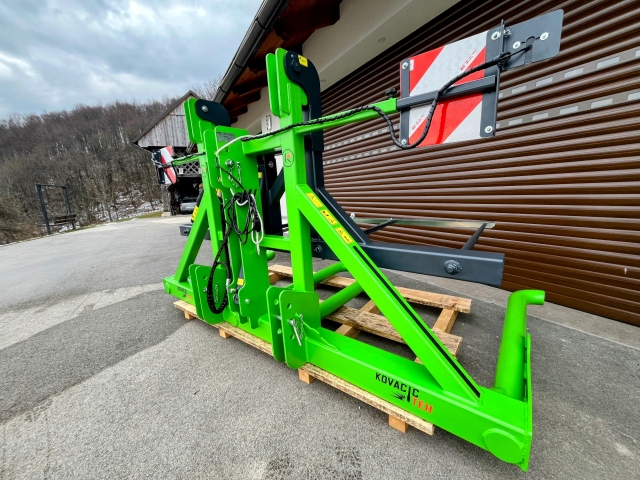 Stranka iz Hrvaške si je sama doma izdelala nakladalnik za bale, ki omogoča doseg na kar 3,7 m višine. Na tak način lahko v en stolp naloži kar nekaj bal in tako skrči površino, potrebno za skladiščenje bal.