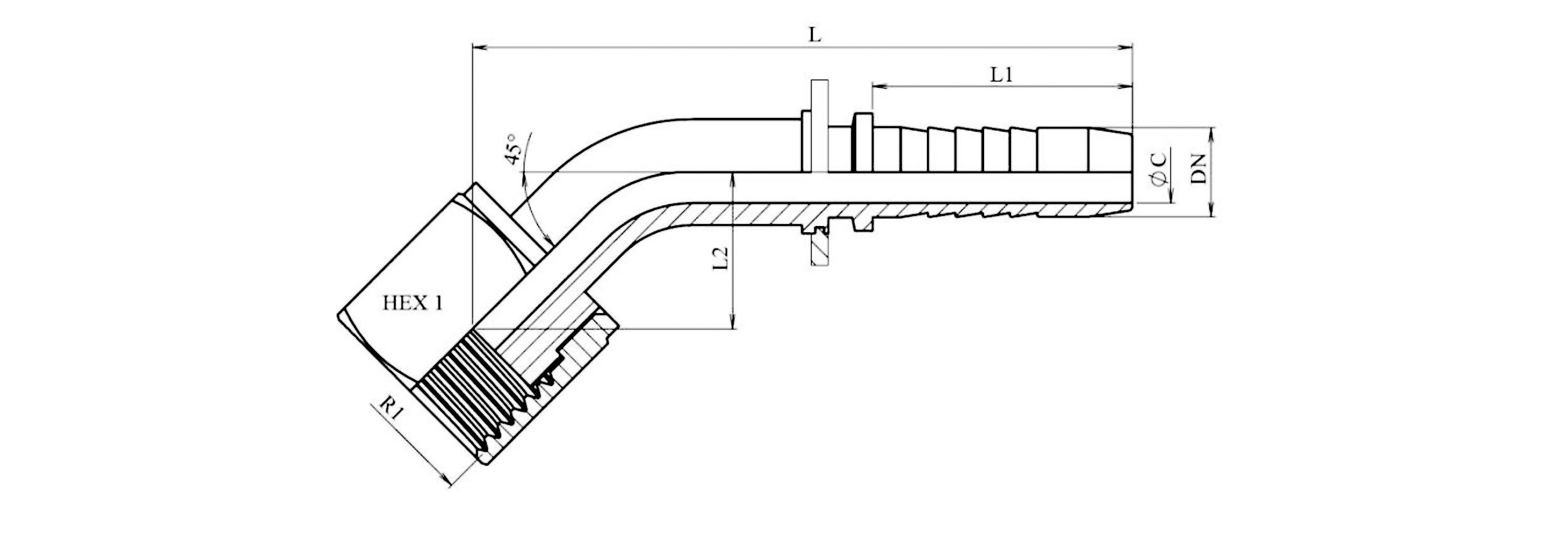 HIDRAVLIČNI PRIKLJUČEK DKORFS ŽENSKI KOLENO 45° DN8-9/16-18