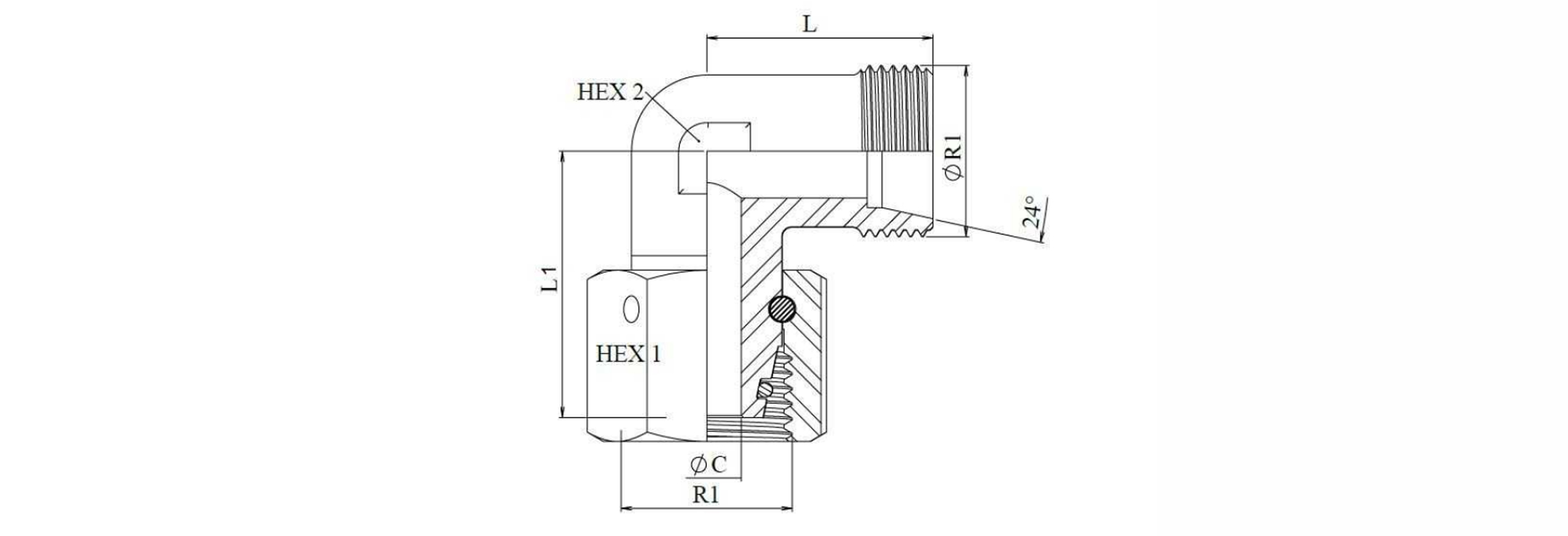 HIDRAVLIČNO KOLENO 90° S-12 Z VRTLJIVO MATICO M20x1,5