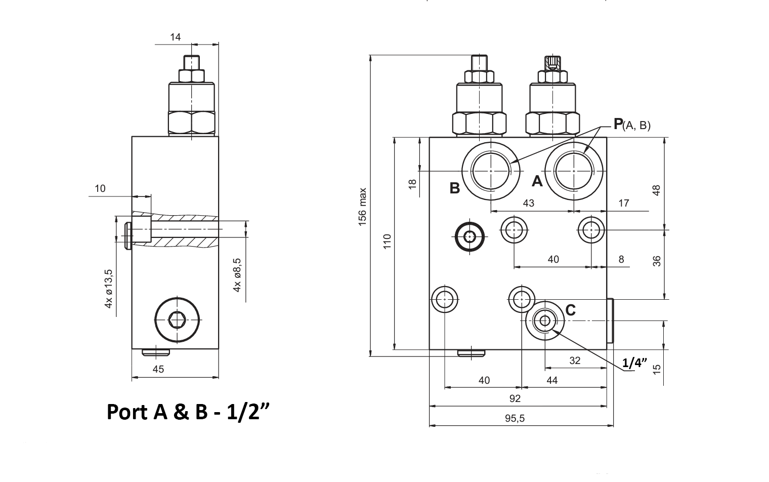 Ventil za hidravlično zavoro služi za aktiviranje in sproščanje hidravlične zavore. Ventil se namesti neposredno na hidravlični motor s štirimi vijaki M8x45 – 8.8.